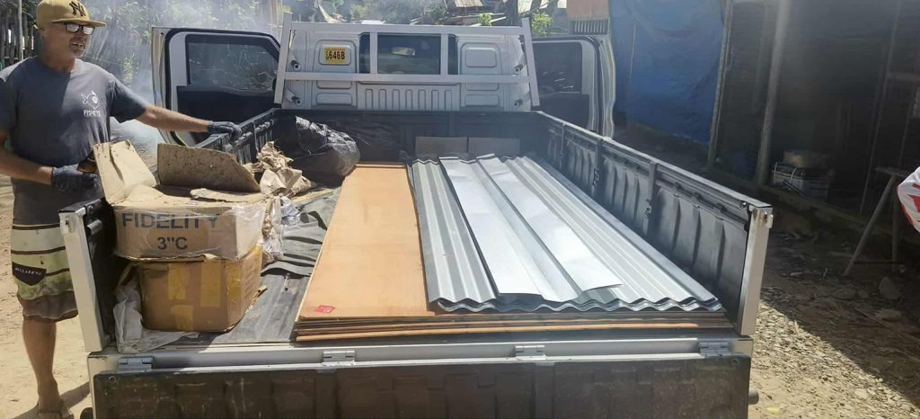 Nákup bambusu, klincov a strešnej krytiny na opravu domov.